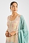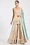 Featuring a dusty green and ivory kurta in tissue base with embroidery. It is paired with embroidered gharara pants and an organza dupatta. Accentuate with statement jewellery and heels for festive occasions or sangeet ceremony.