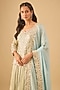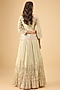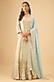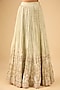 Featuring a dusty green kurta in tissue base with patch, zari and mirror embroidery. It is paired with a pleated lehenga and an organza dupatta. Accentuate with statement earrings and heels for a festive occasion or wedding ceremony.