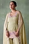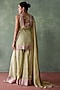 Featuring a green kurta in organza base with floral patch, resham and mirror embroidery. It is paired with sharara pants and a dupatta. Accentuate with statement jewellery and heels for an engagement, haldi or sangeet ceremony.