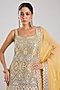 Featuring a blue kurta in tissue base with mirror work and resham embroidery. It is paired with embroidered sharara pants and an organza dupatta. Accentuate with statement jewellery and heels for a wedding or sangeet ceremony.