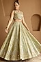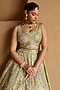 Green Tissue Mirror Embroidered Kalidar Lehenga Set