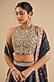 Featuring a grey lehenga in slub base with mirror work. It is paired with an embroidered choli and a dupatta. Accentuate it with statement jewellery and heels for a wedding, engagement or sangeet ceremony.