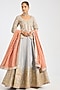 Featuring a grey lehenga in tissue base with embroidery. It is paired with an embroidered blouse and an organza dupatta. Accentuate it with statement jewellery and heels for a wedding, engagement or sangeet ceremony.