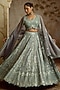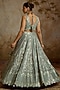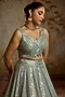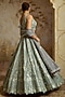 Featuring a grey lehenga in tissue base with resham and mirror embroidery. It is paired with an embroidered blouse and an organza dupatta. Accentuate the designer lehenga with kundan polki or gold jewellery, embellished heels and a potli bag for a complete look, Perfect wear for your wedding, sangeet or engagement ceremony.