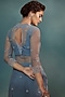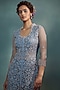 Featuring an ice blue sheer kurta in soft net and dupion silk base with pearl hand embroidery. It is paired with matching pants.