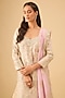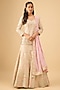 Featuring an ivory kurta in tissue base with floral jaal patch, zari and mirror embroidery. It is paired with a lehenga and an organza dupatta. Accentuate with statement earrings and heels for a festive occasion or wedding ceremony.