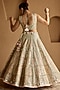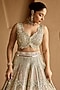 Featuring an ivory lehenga in tissue base with mirror embroidery. It is paired with an embroidered blouse and an organza dupatta. Accentuate the designer lehenga with kundan polki or gold jewellery, embellished heels and a potli bag for a complete look, Perfect wear for your wedding, sangeet or engagement ceremony.
