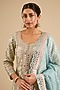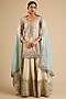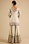 Featuring an ivory kurta in tissue base with mirror work and patch embroidery. It is paired with an embroidered sharara and a dupatta. Accentuate it with polki jewellery and block heels for festive occasions, sangeet or wedding ceremony.