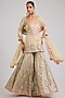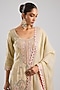 Featuring an ivory kurta in tissue base with patch and mirror embroidery. It is paired with embroidered sharara pants and an organza dupatta. Accentuate it with kundan polki or meenakari jewellery and block heels for a sangeet, wedding or engagement ceremony.