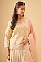 Featuring a yellow kurta in slub silk base with patch, zari and mirror embroidery. It is paired with an ivory tissue pleated lehenga and an organza dupatta. Accentuate with statement earrings and heels for a festive occasion or wedding ceremony.