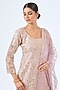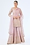 Featuring a lavender kurta in tissue base with mirror work, zari and gota embroidery. It is paired with embroidered sharara pants and a net dupatta. Accentuate it with dangle earrings and heels for a festive occasion or sangeet ceremony.