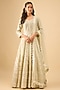 Featuring a light green anarkali in tissue base with zari and mirror embroidery. It is paired with a net dupatta. Accentuate with statement earrings and heels for a festive occasion or wedding ceremony.