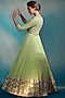 Featuring a lime green pleated anarkali in viscose georgette base with resham, gota, and mirror embroidery. It is paired with a contrasting dupatta in organza base.