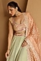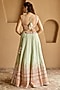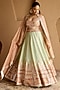 Featuring a mint green lehenga in tissue base with resham and mirror embroidery. It is paired with an embroidered blouse and an organza dupatta. Accentuate the designer lehenga with kundan polki or gold jewellery, embellished heels and a potli bag for a complete look, Perfect wear for your wedding, sangeet or engagement ceremony.