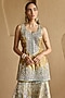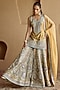 Featuring a mustard kurta in slub silk base with a zari and mirror embroidery. It is paired with gharara pants and an organza dupatta. Accentuate it with kundan polki or meenakari jewellery, embellished heels and a potli bag for a complete look, perfect wear for festive, sangeet or engagement ceremony.