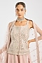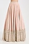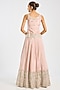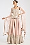 Featuring a peach lehenga in tissue base with embroidery. It is paired with an embroidered blouse and a net dupatta. Accentuate it with statement jewellery and heels for a wedding, engagement or sangeet ceremony.