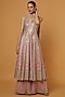 Featuring pink kurta in slub silk base with zari and mirror embroidery. It is paired with matching georgette gharara pants and a net dupatta.