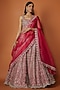 Featuring a pink lehenga in slub silk base with mirror and zari embroidery. It is paired with a blouse and an organza dupatta. Accentuate it with statement jewellery and heels for a wedding or engagement ceremony.