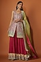 Featuring a pink kurta in slub silk base with mirror and zari embroidery. It is paired with sharara pants and an organza dupatta. Accentuate it with statement earrings and heels for a wedding, haldi or engagement ceremony.