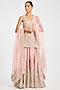 Featuring a pink kurta in tissue base with embroidery. It is paired with mustard embroidered sharara pants and an organza dupatta. Accentuate with statement jewellery and heels for festive occasions or sangeet ceremony.
