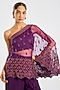 Purple Organza Pearl Embroidered One-Shoulder Cape Set