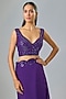 Featuring a purple saree in organza base with mirror and resham embroidery. It is paired with a blouse. Accentuate it with traditional temple jewellery and a low bun for a regal look, perfect for weddings, receptions or grand festive occasions.