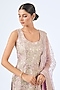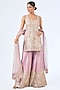 Featuring a purple kurta in slub silk and tissue base with mirror, zari and gota embroidery. It is paired with embroidered sharara pants and a net dupatta. Accentuate it with dangle earrings and heels for a festive occasion or sangeet ceremony.