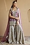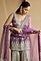 Featuring a purple kurta in tissue base with a zari and mirror embroidery. It is paired with gharara pants and an organza dupatta. Accentuate it with kundan polki or meenakari jewellery, embellished heels and a potli bag for a complete look, perfect wear for a festive, sangeet or engagement ceremony.