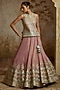 Featuring a purple lehenga in tissue base with gota and mirror embroidery. It is paired with an embroidered kurta and an organza dupatta. Accentuate the designer lehenga with kundan polki or gold jewellery, embellished heels and a potli bag for a complete look, Perfect wear for your wedding, sangeet or engagement ceremony.