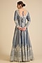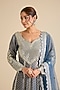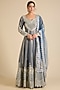 Featuring a steel grey anarkali in tissue base. It is paired with an organza dupatta. Accentuate it with statement earrings and elegant heels for a refined look, perfect for festive gatherings, sangeet ceremonies, family celebrations, or cultural occasions.
