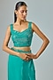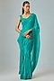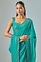 Featuring a teal saree in organza base with mirror and resham embroidery. It is paired with a blouse. Accentuate it with traditional temple jewellery and a low bun for a regal look, perfect for weddings, receptions or grand festive occasions.