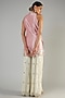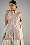 Featuring a pink front open kurta in slub silk base with zari and mirror embroidery, including floral details. It is paired with contrasting georgette gharara pants and a net dupatta.