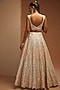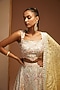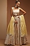 Featuring a white lehenga in slub silk base with resham, leather and gota embroidery. It is paired with a blouse and a yellow dupatta. Perfect wear for any occasion, from weddings to festive celebrations and cultural gatherings.