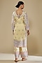 Featuring a yellow kurta in organza base with resham, mirror and gota embroidery. It is paired with pants and a dupatta. Accentuate it with dangler earrings, a clutch and block heels for festive-ready look.