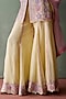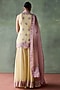 Featuring a yellow kurta in organza base with floral patch, resham and mirror embroidery. It is paired with sharara pants and a dupatta. Accentuate with statement jewellery and heels for an engagement, haldi or sangeet ceremony.