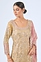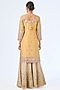 Featuring a yellow and pink kurta in tissue silk base with mirror work, zari and patch embroidery. It is paired with embroidered sharara pants and an organza dupatta. Accentuate it with dangle earrings and heels for a festive occasion or sangeet ceremony.