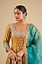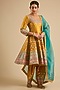 Featuring a yellow anarkali in slub base with mirror work and patch embroidery. It is paired with salwar and a dupatta. Accentuate it with statement earrings, a sleek braid, and metallic heels, ideal for engagement ceremonies or weddings.