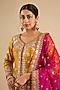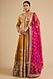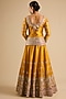 Featuring a yellow lehenga in slub base with mirror work and patch embroidery. It is paired with an embroidered choli and a dupatta. Accentuate it with statement jewellery and heels for a wedding, engagement or sangeet ceremony.