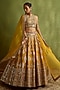 Yellow Slub Silk Mirror Embroidered Lehenga Set