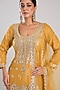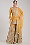 Featuring a yellow kurta in tissue base with mirror work. It is paired with embroidered gharara pants and an organza dupatta. Accentuate with statement jewellery and heels for a wedding or sangeet ceremony.