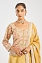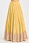 Featuring a yellow lehenga in tissue base with mirror work and resham embroidery. It is paired with an embroidered blouse and an organza dupatta. Accentuate it with statement jewellery and heels for a wedding, engagement or sangeet ceremony.