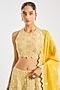Featuring a yellow lehenga in tissue base with embroidery. It is paired with an embroidered blouse and an organza dupatta. Accentuate it with statement jewellery and heels for a wedding, engagement or sangeet ceremony.