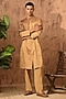Featuring an antique-colored kurta in tissue base with thread and moti work. It is paired with pyjama pants. Style it with mojaris for a festive occasion, wedding or engagement ceremony, exuding charm and elegance.