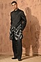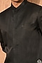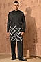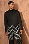 Featuring a black indowestern in linen satin base with zardosi embroidery. It is paired with a kurta and pants. Style it up with mojaris for a wedding, sangeet or engagement ceremony.