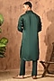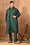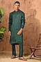 Featuring a green kurta in linen satin base with embroidery. It is paired with pyjama pants and a stole. Perfect attire for a festive ceremony, exuding traditional charm and timeless elegance.