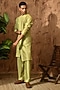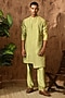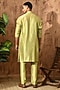 Featuring a green kurta in chanderi base with zardosi work. It is paired with pyjama pants. Style it up with kolhapuri sandals for a festive occasion, mehendi, wedding or engagement ceremony.