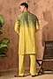 Featuring a green and yellow kurta in viscose silk base with patra work. It is paired with pyjama pants. Style it with mojaris for a festive occasion, wedding or engagement ceremony, exuding charm and elegance.
