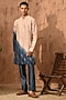 Rose Gold & Blue Viscose Silk Embroidered Kurta Set