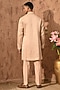 Featuring a rose gold kurta in linen satin base with embroidery. It is paired with pants. Style it with mojaris for a festive occasion, wedding or engagement ceremony, exuding charm and elegance.