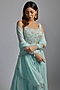 Featuring a citrus blue anarkali in georgette base with cutdana embroidery. It is paired with a matching organza dupatta and a belt.
